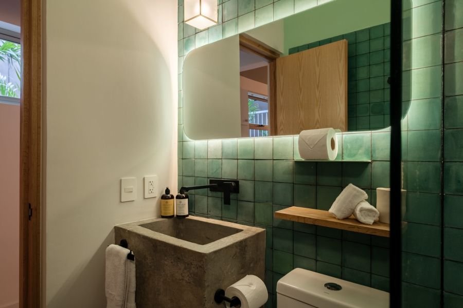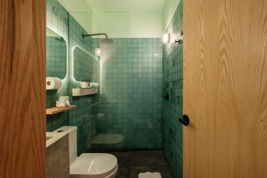 Guests in Ahuacate have access to the rooftop terrace with its sauna, ice bath, and lounge chairs, as well as the property’s communal areas. Whether you’re looking to sunbathe, recharge, or simply enjoy a quiet coffee, the spaces are designed to suit your mood. Privacy and connection flow naturally here.