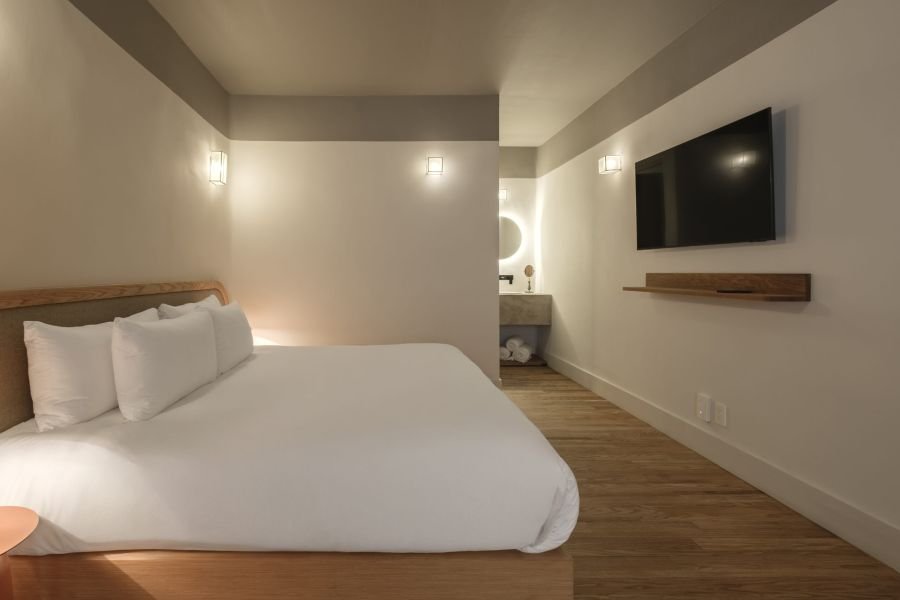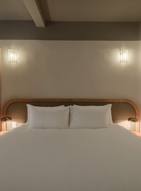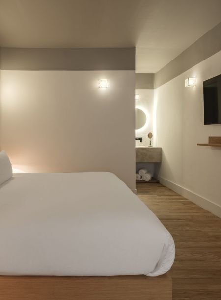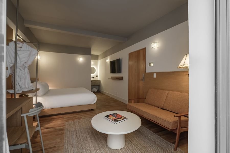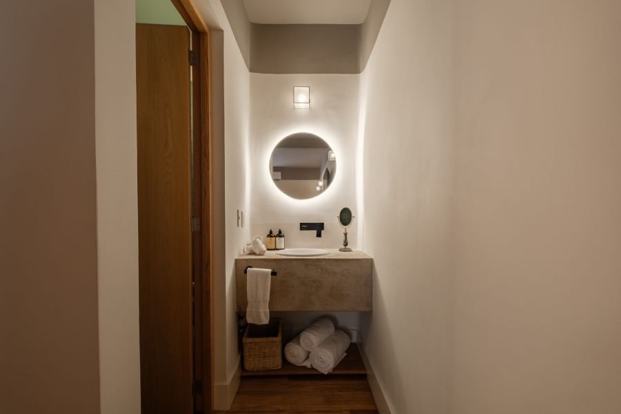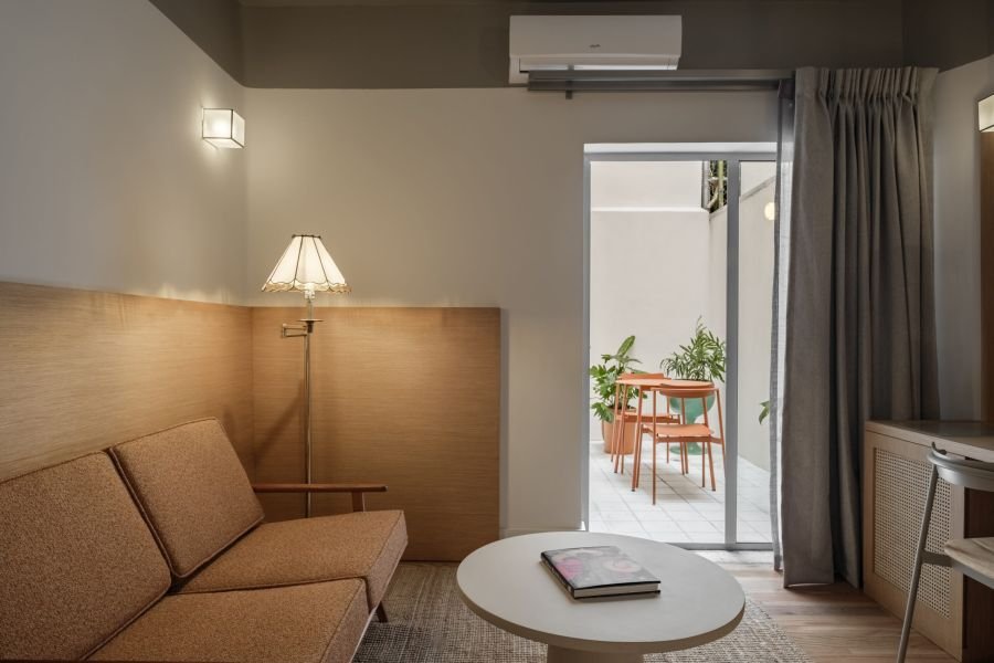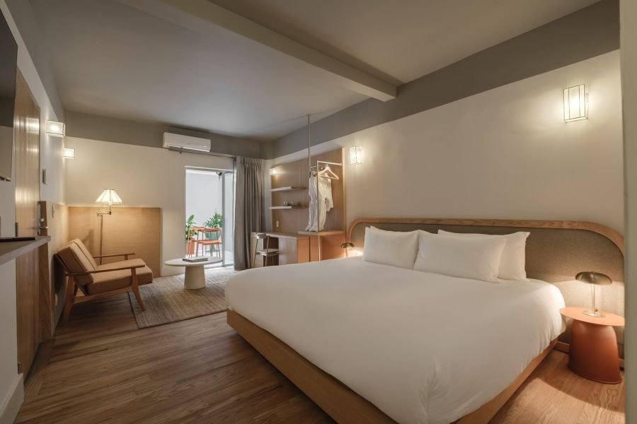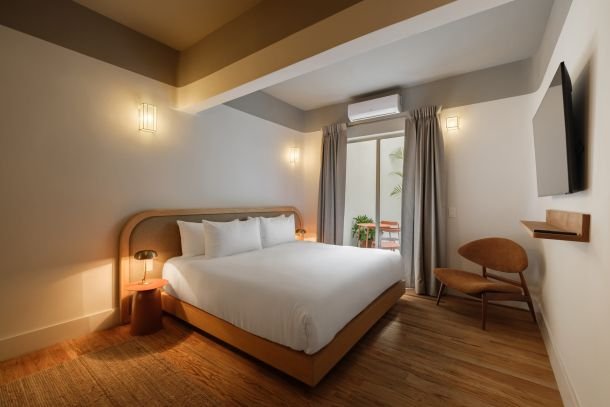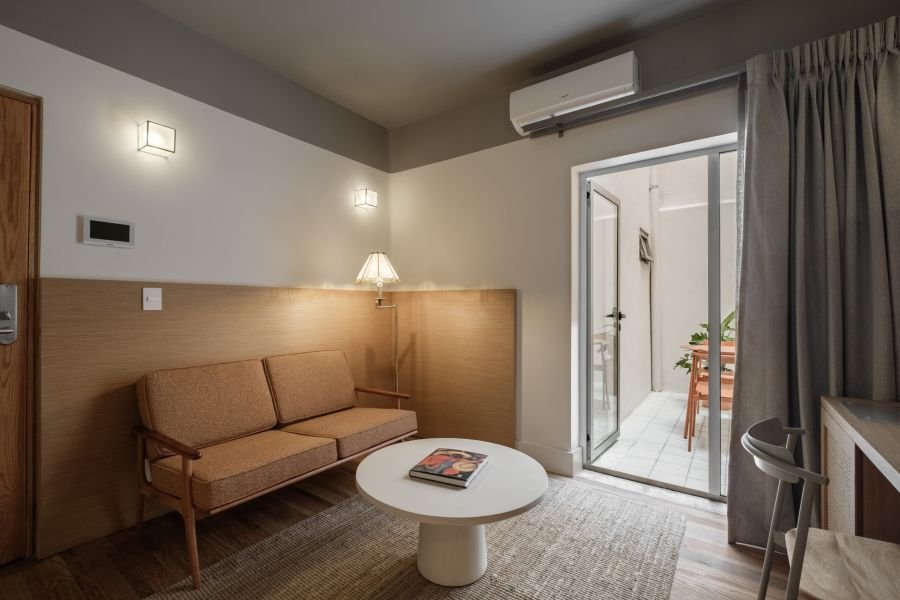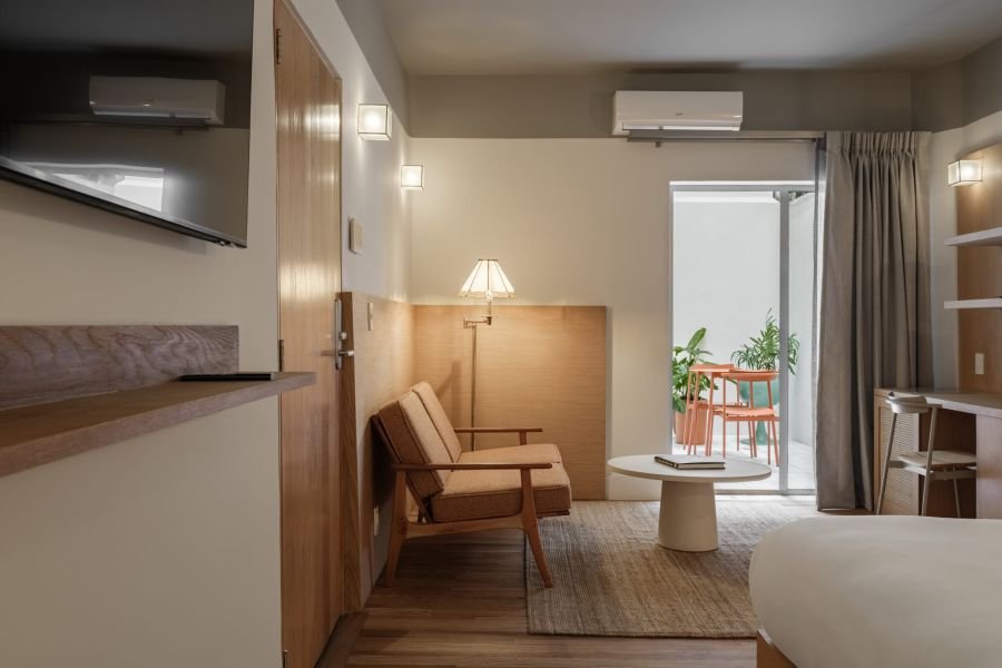 This one-bedroom unit for two is styled with a mix of natural textures, soft fabrics, and curated décor. Light fills the space during the day, while its cozy design makes it ideal for peaceful evenings. It’s a room that feels like a home — inviting, authentic, and perfectly balanced.