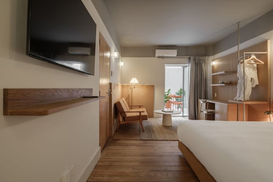 Guests in Cacao have access to the rooftop with its sauna, ice bath, and sun loungers, as well as the hotel’s shared lounges. Whether you want to relax privately or connect with others, the property’s design makes it easy to do both. The wellness spaces are there to help you recharge in your own way.