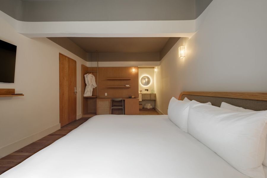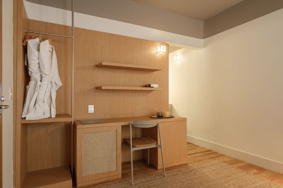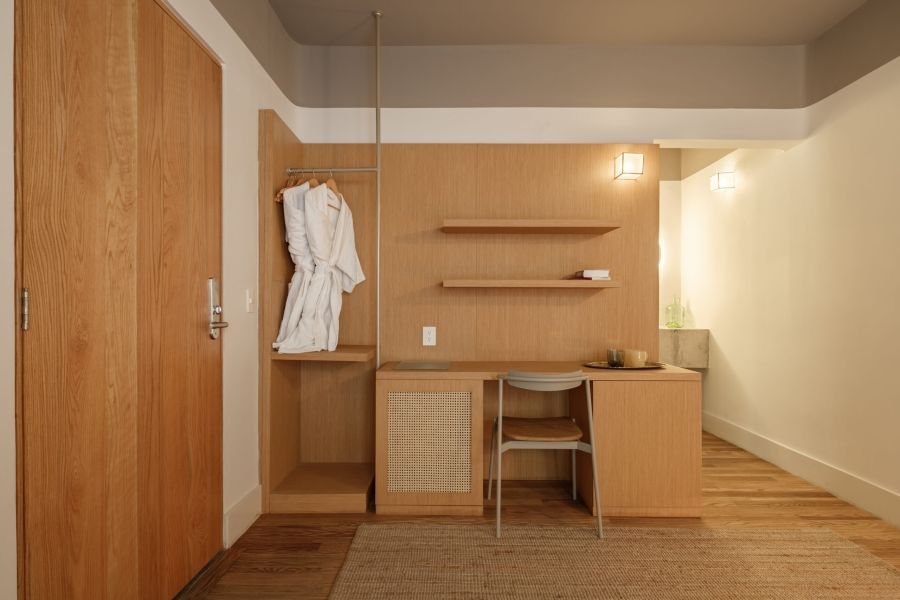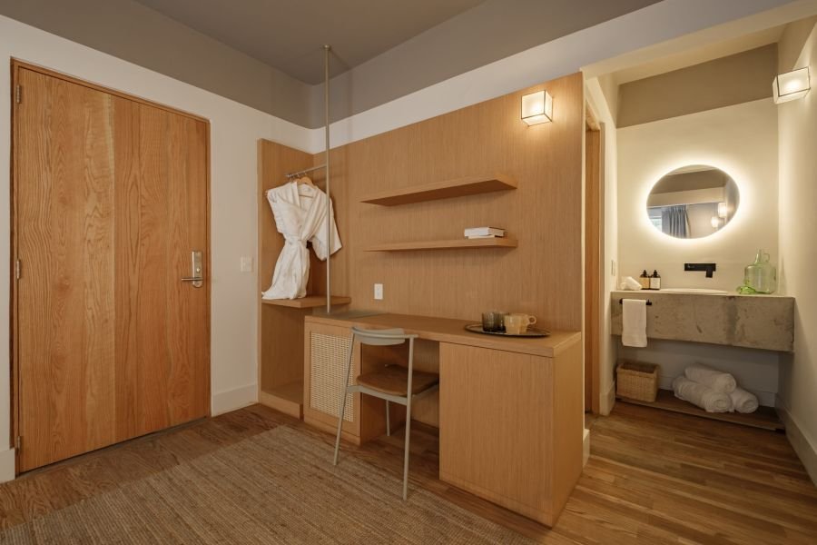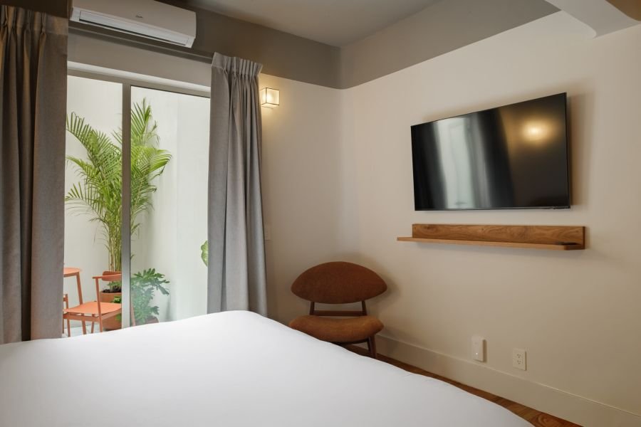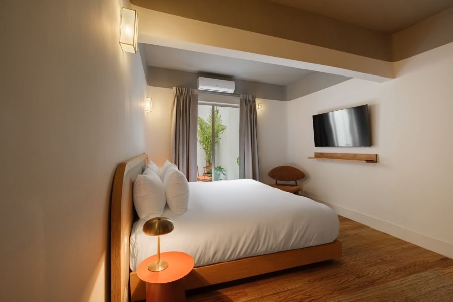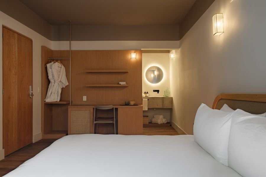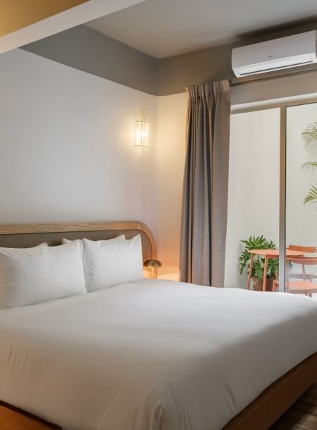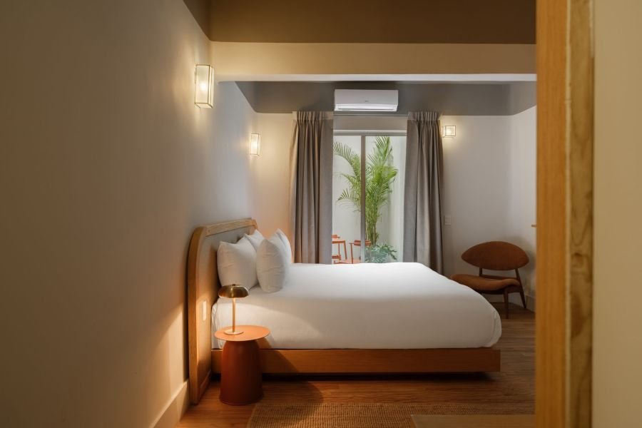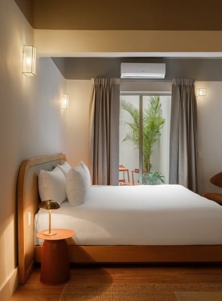 Designed for two, Helecho offers a cozy bedroom filled with light and warmth. Soft linens, handcrafted details, and natural textures make the space feel both personal and inviting. It’s a room where mornings feel unhurried, afternoons are restful, and nights are serene — the perfect counterbalance to the city’s buzz.