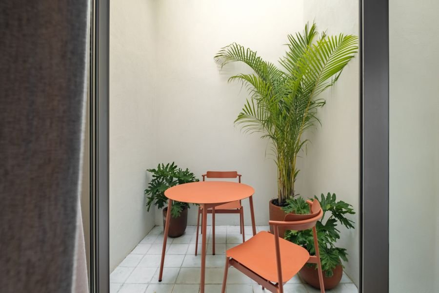 Guests in Helecho have access to the rooftop terrace with its sauna, ice bath, and lounge chairs, as well as the property’s communal areas. Whether you’re looking to sunbathe, recharge, or simply enjoy a quiet coffee, the spaces are designed to suit your mood. Privacy and connection flow naturally here.