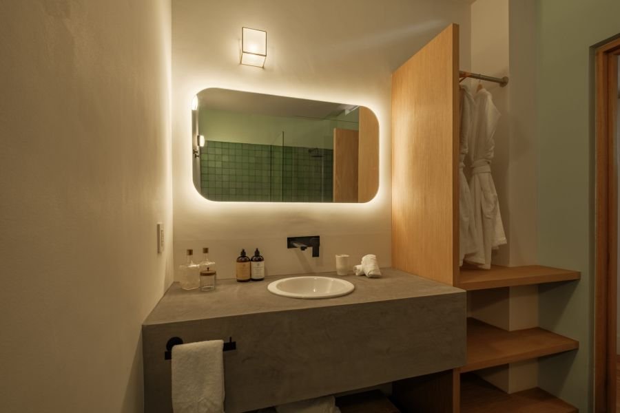Guests in Ocote have access to the rooftop terrace, wellness spaces, and lounges throughout the hotel. Whether you want to sunbathe, step into the sauna, or take a refreshing ice bath, the spaces are there to help you recharge. Communal areas add opportunities to connect, while your room remains your private haven.